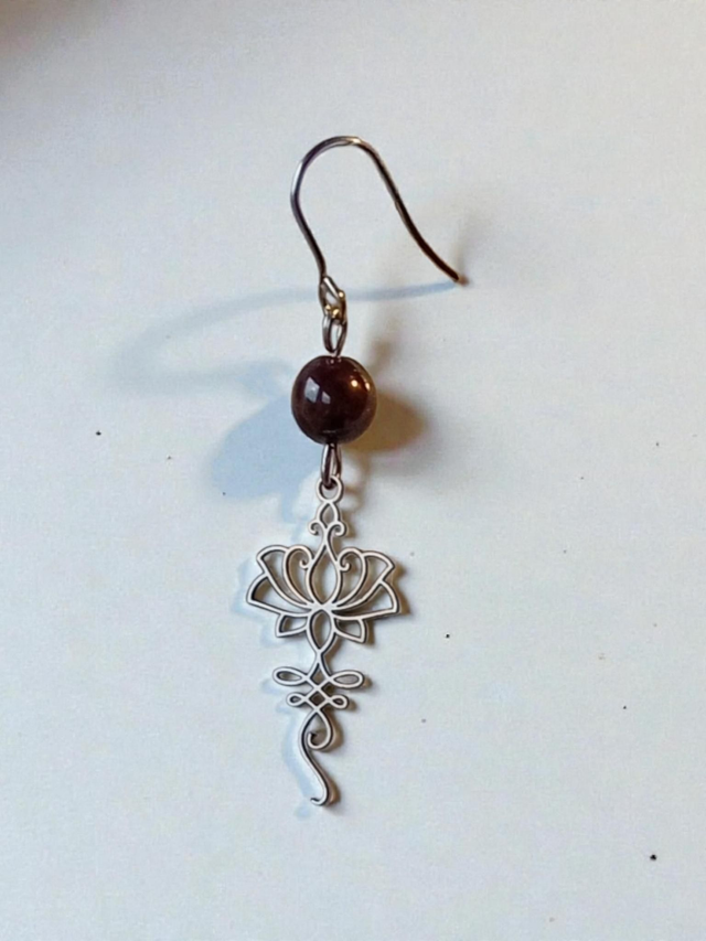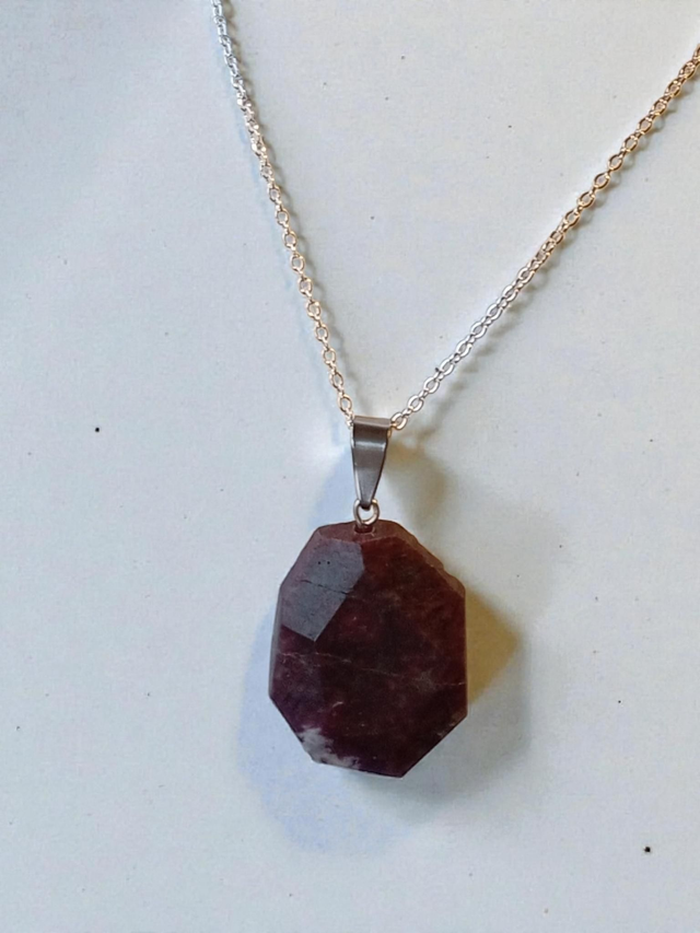 A genuine Garnet faceted pendant on a Sterling silver 18 inch necklace with Surgical steel hook earrings featuring genuine Garnet beads and silver lotus leaf style charms.